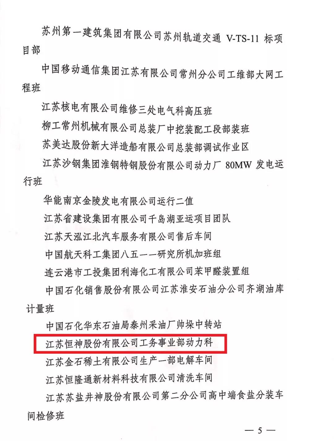 近日,共青團江蘇省委、江蘇省應急管理廳公布了獲得“2020年度江蘇省青年安全生產示范崗”榮譽稱號的集體名單,江蘇恒神股份有限公司工務事業部動力科獲評“2020年度江蘇省青年安全生產示范崗”。