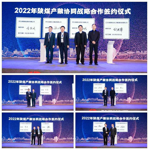 會上,五家金融企業分別與陜煤股份、化工集團、電力事業部、陜鋼集團、北元化工、寶雞華海等單位簽訂戰略合作協議,為進一步深化產融合作奠定堅實基礎。神木煤化工、勝幫科技、陜焦公司、陜煤供應鏈就產融結合實踐經驗進行了交流分享。